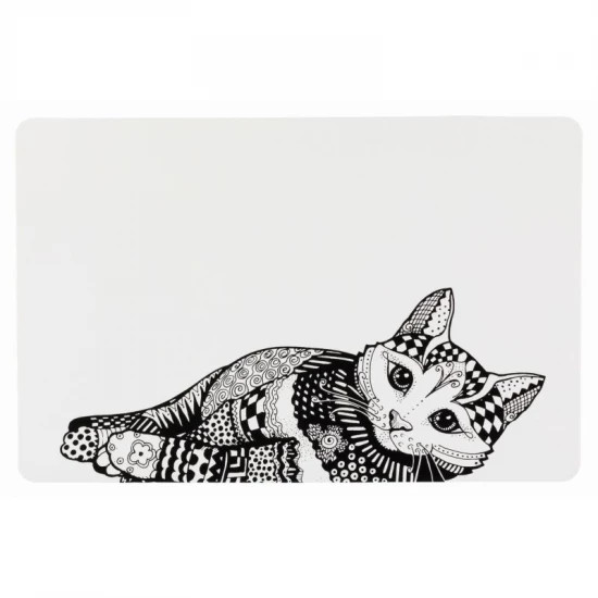 Tál alátét macska motívummal 44*28cm fehér/fekete