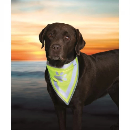 Védje meg kedvencét a balesetektől. Tépőzáras, fényvisszaverős kendő kutyák részére. Tépőzáras kivitelezés, mancs motívummal díszítve.