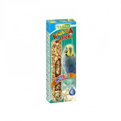Gabonakeverékkel bevont Nestor eledel pálcika Duplarúd hullámos- és törpepapagájoknak jóddal és kagylóval.