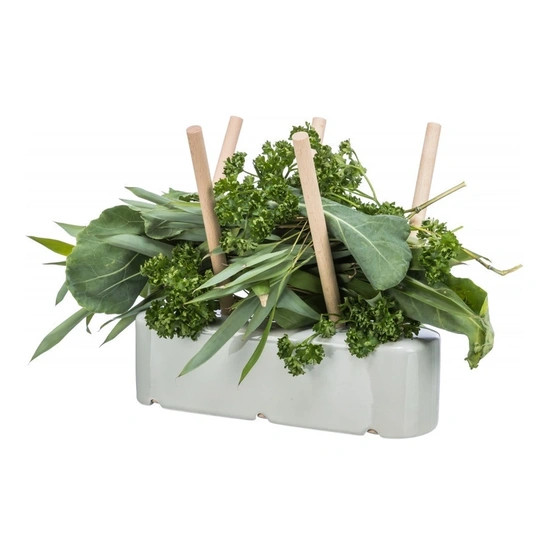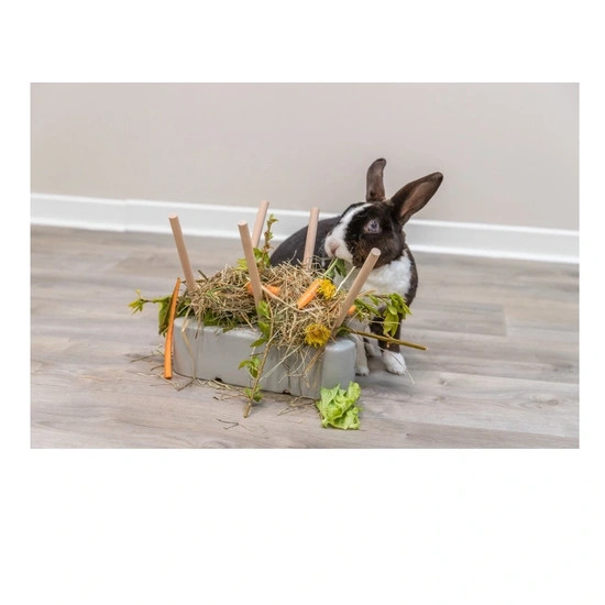 Ha friss zölddel, vagy szénával, esetleg faágakkal szeretné meglepni kedvencét, akkor ezzel a kerámia és fa elemekből álló tartóval higiénikusan tálalhatja fel kedvencének.