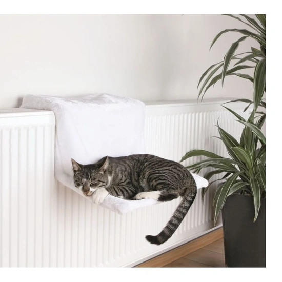 A macskák a puha meleg helyeket kedvelik. Ezzel a radiátorra akasztható fekhellyel kedvenc helyet alakíthat ki a macskának. Bármely típusú radiátorra könnyen felszerelhető amely legfeljebb 11,5 cm széles. A fémkeretnek köszönhetően nagyon stabil ezért nehezebb macskáknak is alkalmas. A rövid szálú könnyen lehúzható plüsshuzat nem bolyhosodik. 30 fokig mosható szárítógépben nem szárítható. A plüsshuzat szálait kefélje át mosás után.